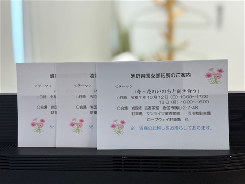 お客様が先生をされている、池坊岩国支部にて花展が開催されます