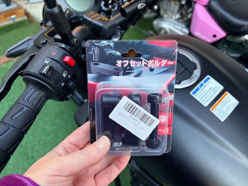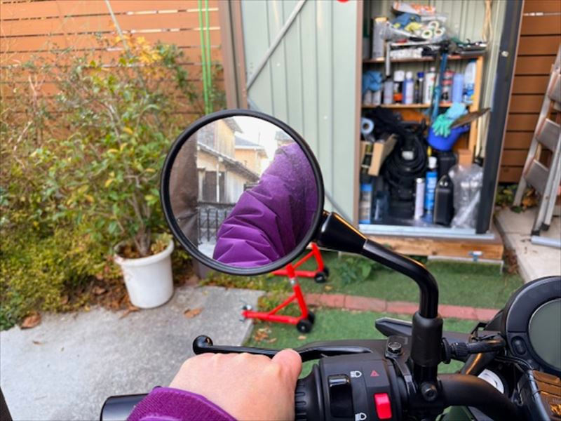 バックミラーの位置を外側にずらしました。