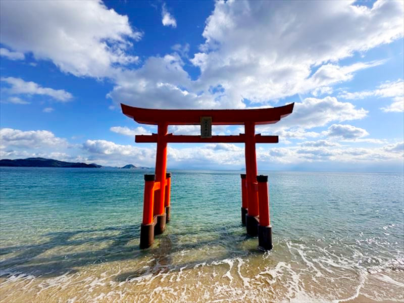 海の中に立つ鳥居がとてもきれいで
