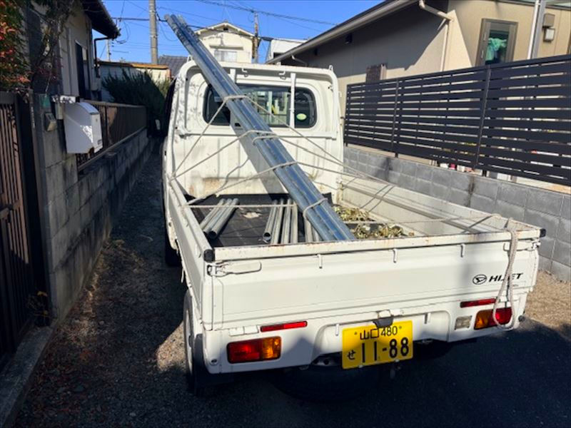 ホームセンターで軽トラを借りて、資材を一気に搬入します。