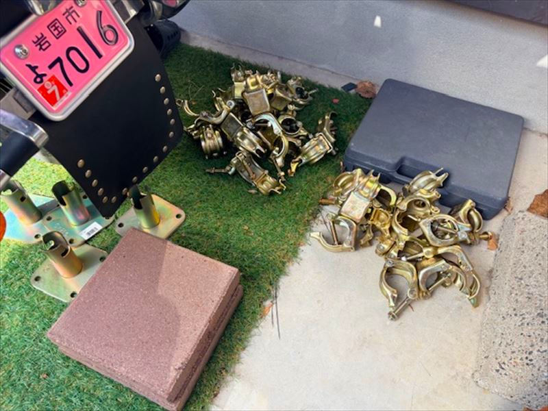単管パイプにクランプにベース