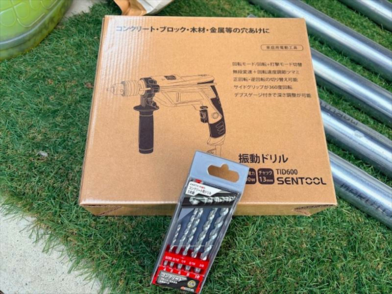 振動ドリルとコンクリート用のドリルビットも新しく購入。