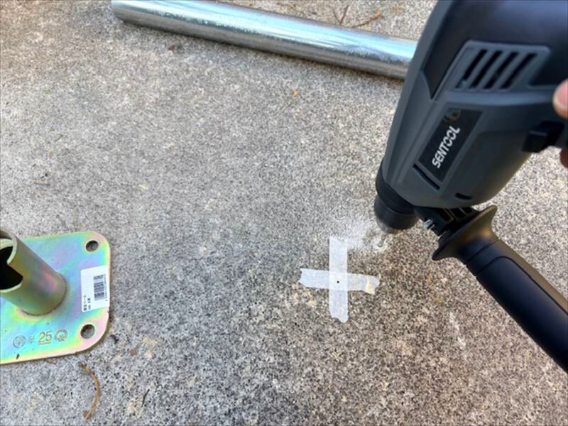 振動ドリルで穴を開けて、アンカーボルトでベースを固定します。