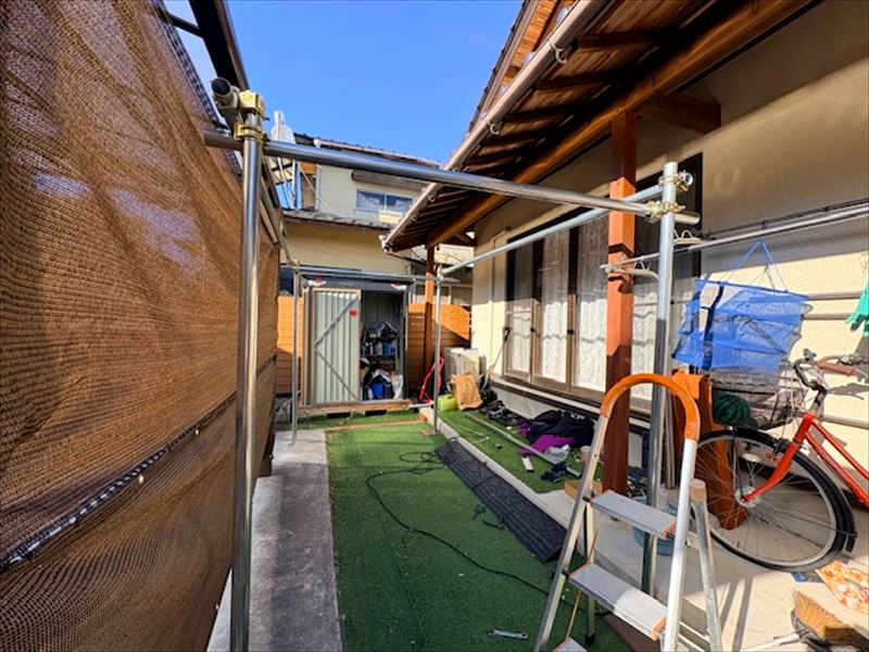 一方、反対側は土の上に人工芝。