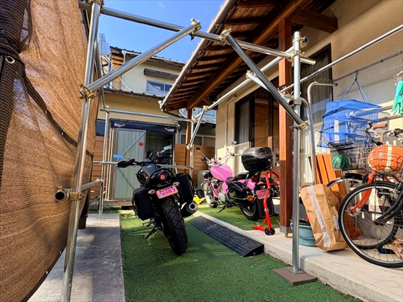 庭のデッドスペースを活用して、バイク置き場をDIY