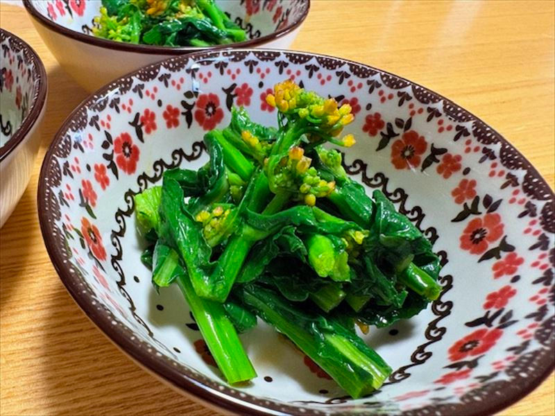 菜の花の辛し和えををつつきながら、ムクロジ焼酎と白州を飲み比べてみる。