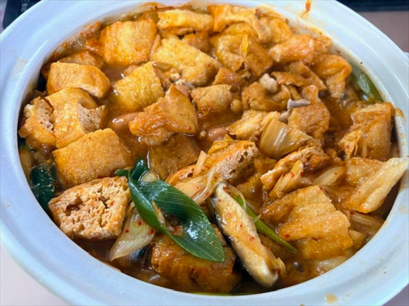 錦町と六日市で買った油揚げをたっぷり入れたキムチ鍋と、